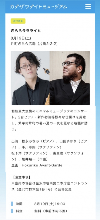8月19日(土) 金沢ナイトミュージアム きららララライヒ
