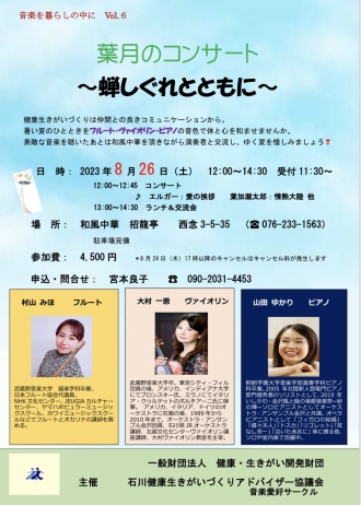 8月26日(土) 葉月のコンサート ~蝉しぐれとともに~